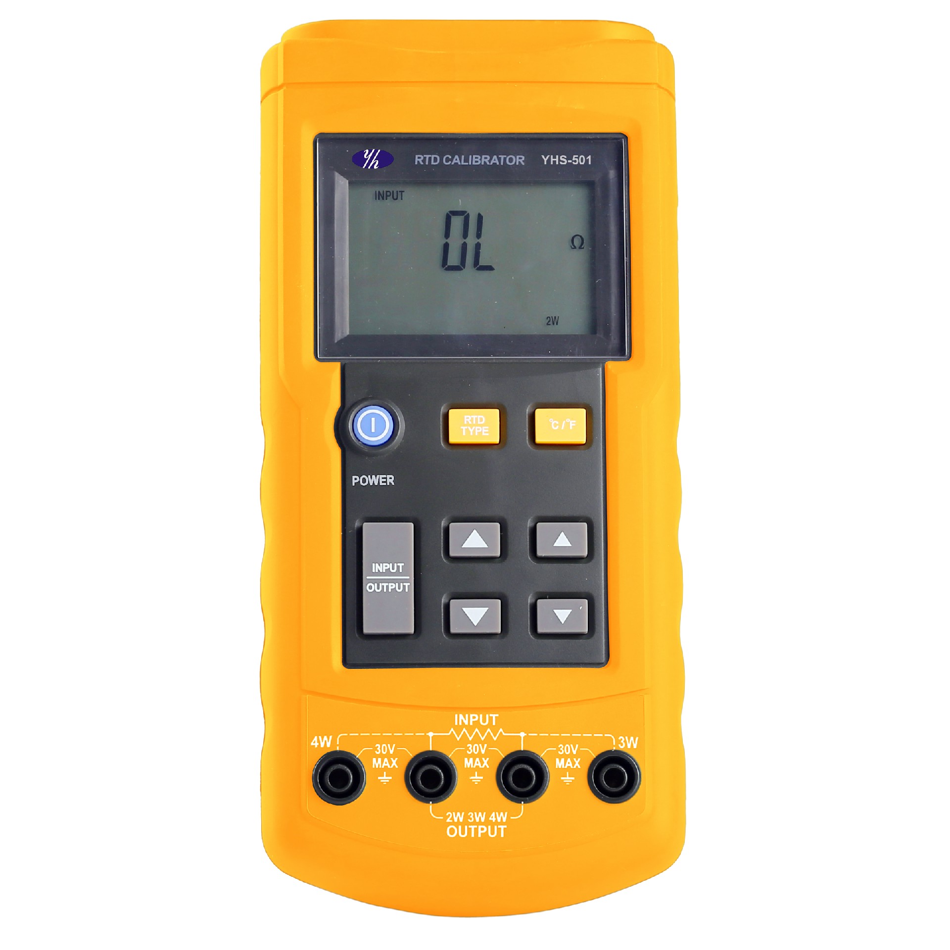 YHS501Z热电阻 ( RTD) 校准仪是一个用来校正 RTD (测温电阻体) 变送器(包括大部分脉冲变送器)的手提工具。它能模拟并测量多种不同类型的 RTD(以 °C 或 °F 为单位)。同时它也能模拟并测试电阻。