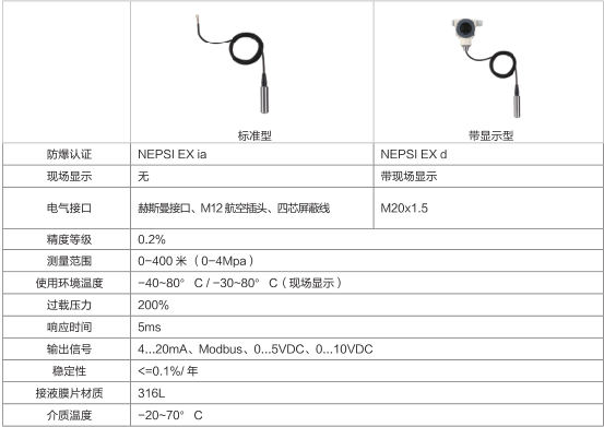 PM10 静压式液位计技术参数